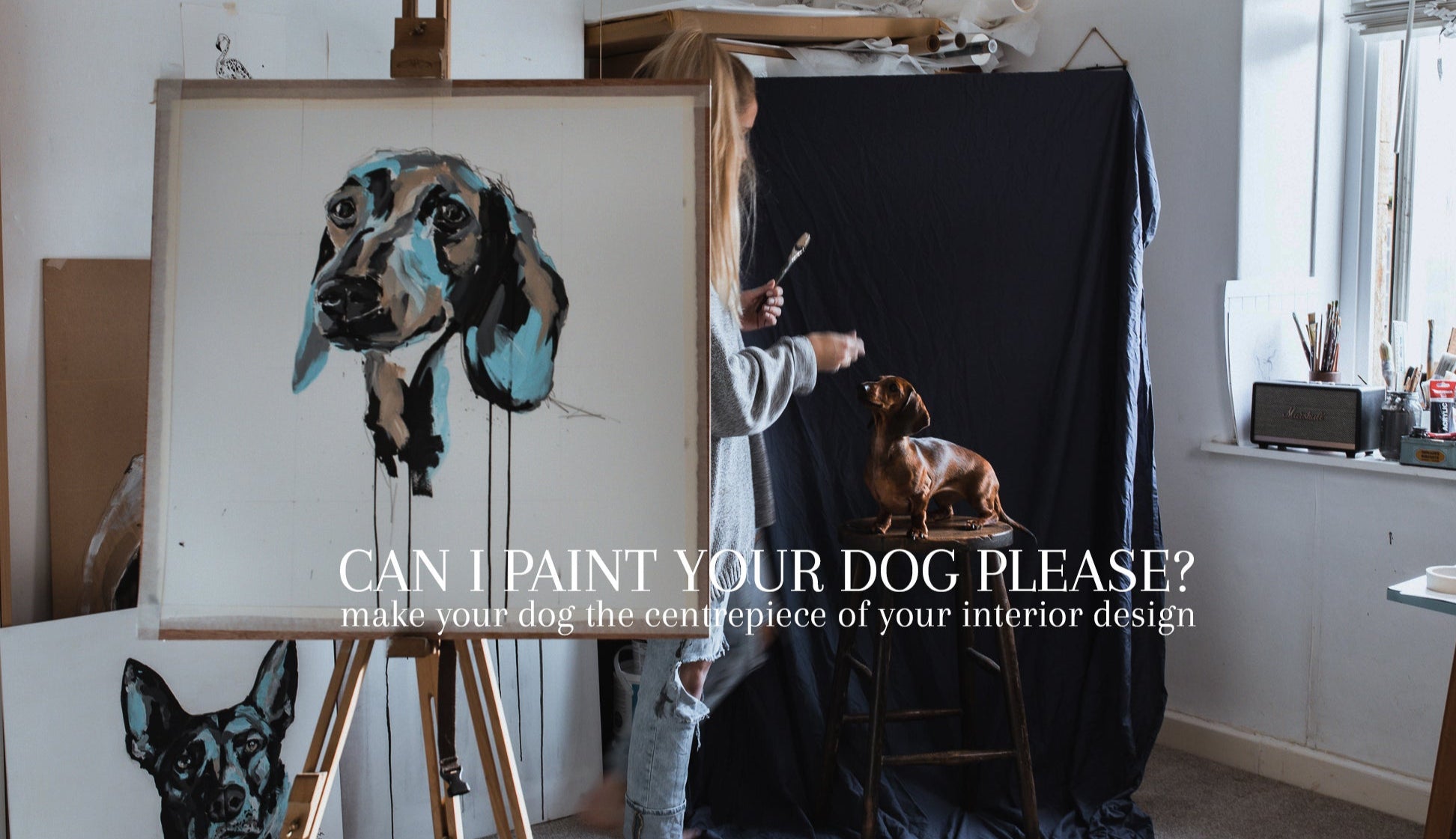 Amy is a contemporary artist specialising in custom dog portraits of your pets. Typically working from photographs, in acrylic paint.