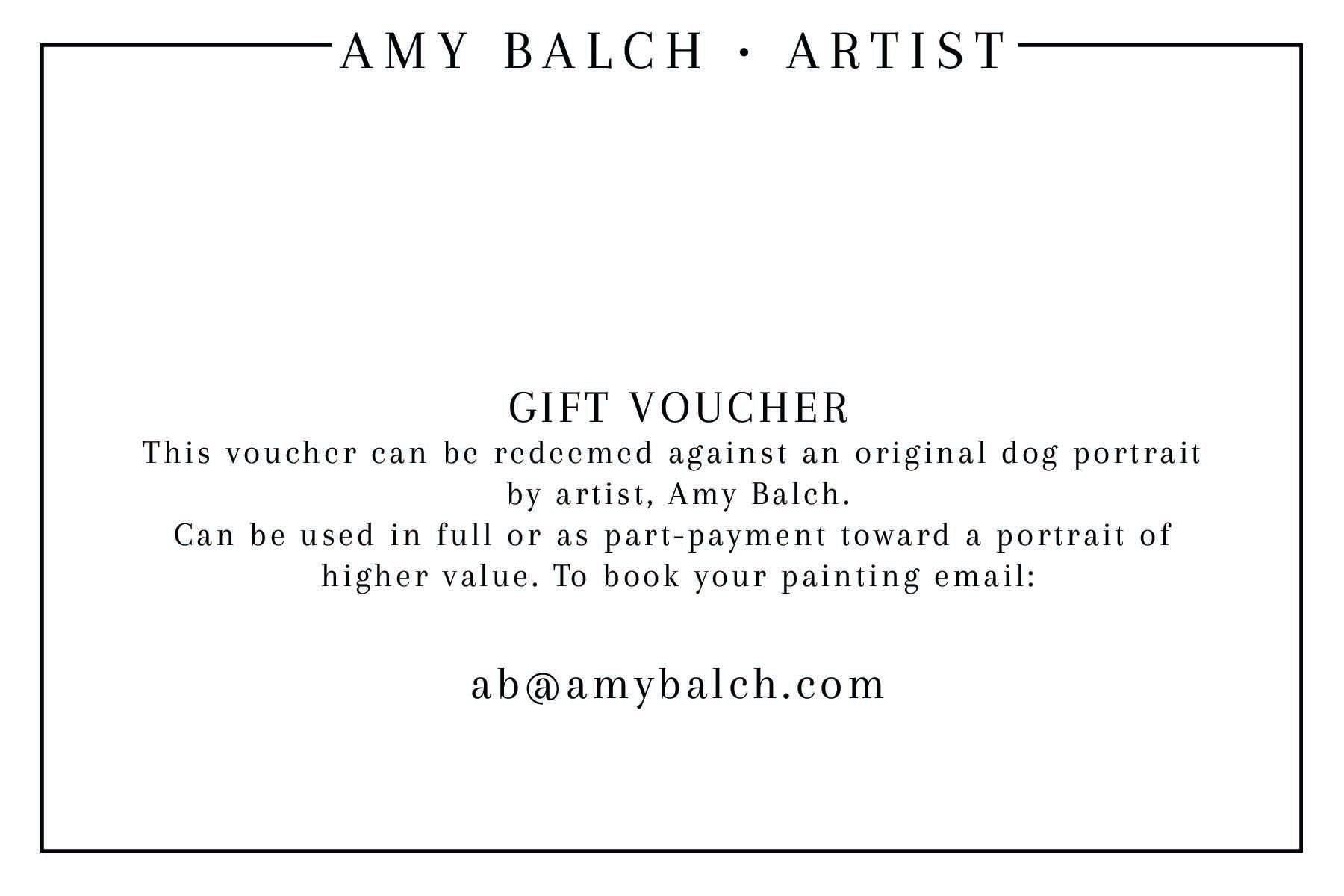 Gift card redeemable for original dog portrait art - each card can be used as full payment or part payment for an upgraded size portrait.